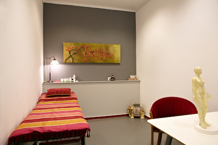 Für unsere zahlreichen Akupunkturbehandlungen können Sie sich in den speziell gestalteten Räumen entspannen. Auch hier sorgt das ausgefeilte Farbkonzept unserer Praxis für eine sichere und wohlige Athmosphäre.